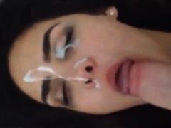 Amateur girl loves to take cum on face and tits