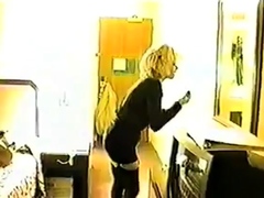 Corrupting blonde lesbian in stockings gets pussy dildoed
