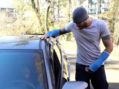 Sexy Mdchen gibt einen Outdoor-Blowjob